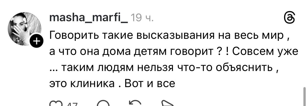 «Мне очень жаль детей. Похоже, у нее случился нервный срыв — это слова нездорового человека», — считают комментаторы.