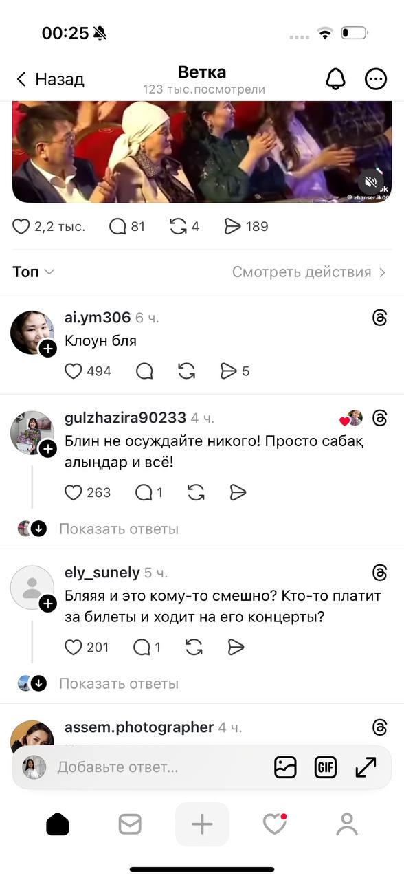 В Threads на фоне разгоревшегося скандала с Турсынбеком Кабатовым появляются посты с призывами отменить его концерты. Некоторые пользователи также призывают бойкотировать площадки, продающие билеты на его выступления, передает ИА «NewTimes.kz».