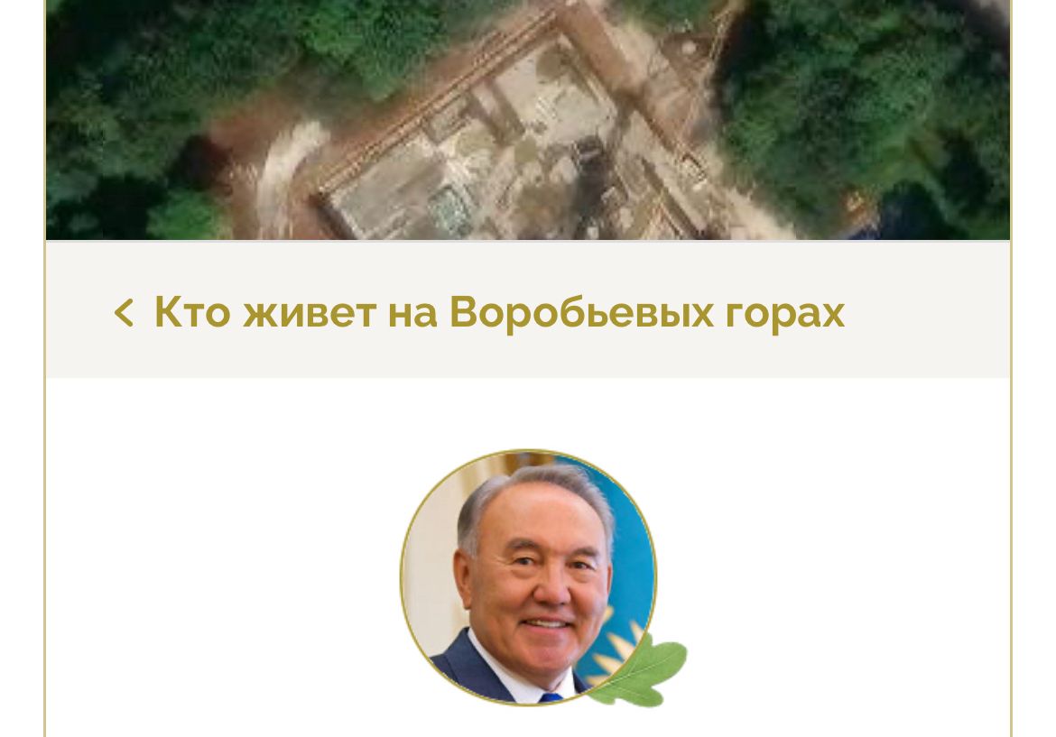 Экс-президент Казахстана Нурсултан Назарбаев, по данным расследовательского медиа «Проект», много лет пользовался элитной государственной дачей в закрытом поселке ФСО на Воробьёвых горах в Москве, передает ИА «NewTimes.kz».
