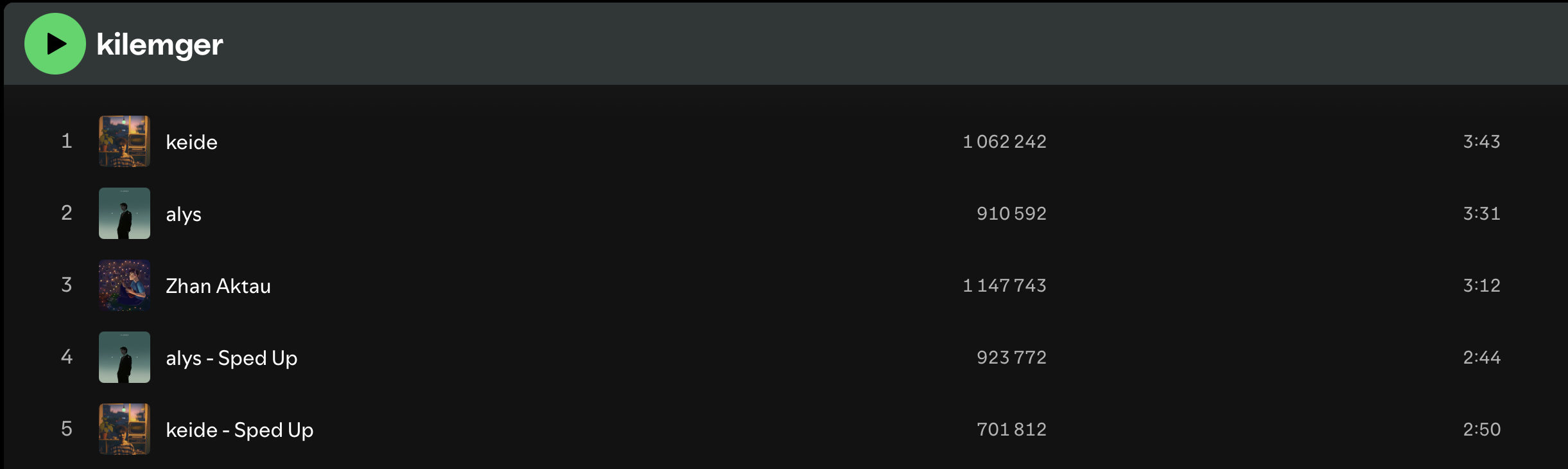 Kilemger — молодой казахстанский исполнитель в жанре indie, автор песен и музыкант из города Семей. Широкая аудитория узнала о нём в 2022 году после выхода трека Zhan Aktau, который быстро завирусился в TikTok. Успех закрепили композиции keide, alys, kunim и paradise — они стали одними из самых узнаваемых инди-треков в стране.