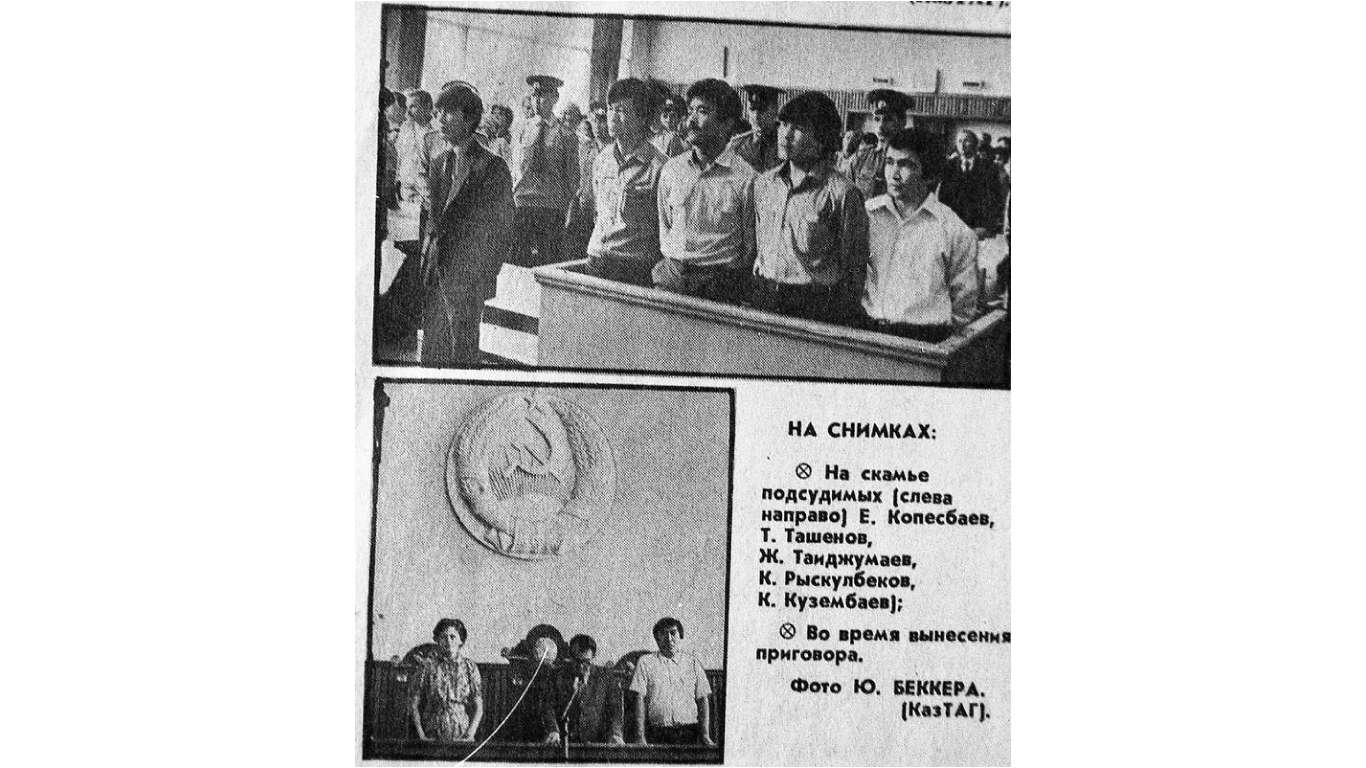 Журналисты Qalam поговорили с автором фото, который в мае 1987 года сделал фото с суда над Рыскулбековым, Ташеновым, Тайжумаевым, Кузембаевым и Копесбаевым, передает ИА «NewTimes.kz».