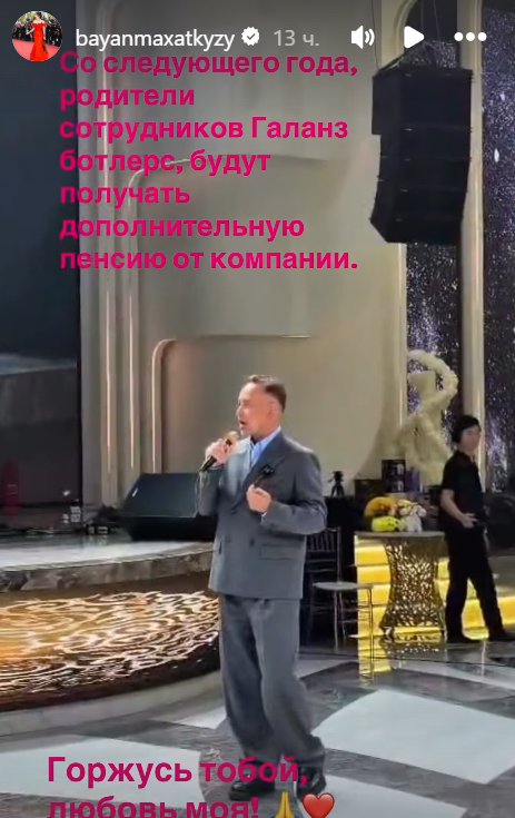 На новогоднем корпоративном вечере компании Турсенгали Алагузов подвел итоги 2025 года, поздравил коллег с наступающими праздниками и анонсировал выплату пенсий всем родителям сотрудников, чей возраст достиг 65 лет. Он объявил, что каждый родитель будет ежемесячно получать по 50 тысяч тенге от компании только за то, что воспитал для компании ценного сотрудника.