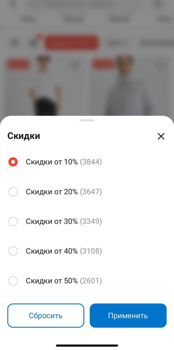 Вкратце разберем три бренда. К примеру, у DeFacto скидки заметнее всего: по фильтру «от 50%» почти вся линейка уходит в минус – и брюки, и худи, и рубашки. Проценты ровные, но все равно полезно смотреть историю – у некоторых товаров перед акцией бывает резкий скачок вверх, который красиво раздувает «скидку».