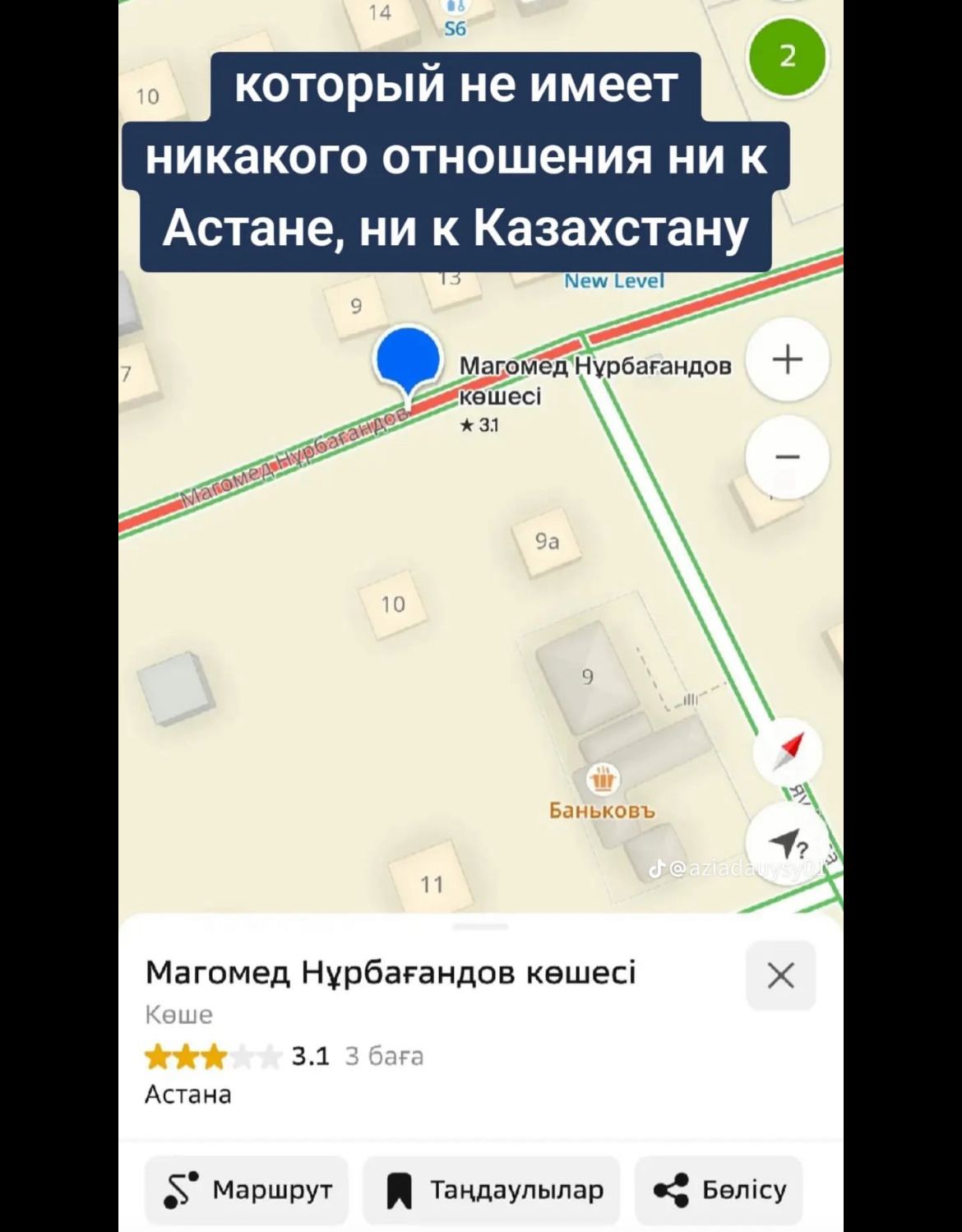 «В городе Астане отсутствует улица, названная в честь Магомеда Нурбагандова. Соответствующие нормативно-правовые акты о присвоении данного наименования не принимались. В настоящее время проводится работа с компаниями 2ГИС и «Яндекс» с целью выяснения причин появления одноимённой улицы в электронных картографических данных указанных сервисов, поскольку в картографическом сервисе «Google» данная улица отсутствует. В ближайшее время наименование улицы Магомеда Нурбагандова будет удалено из электронных карт данных указанных сервисов»,—заверили в ведомстве.