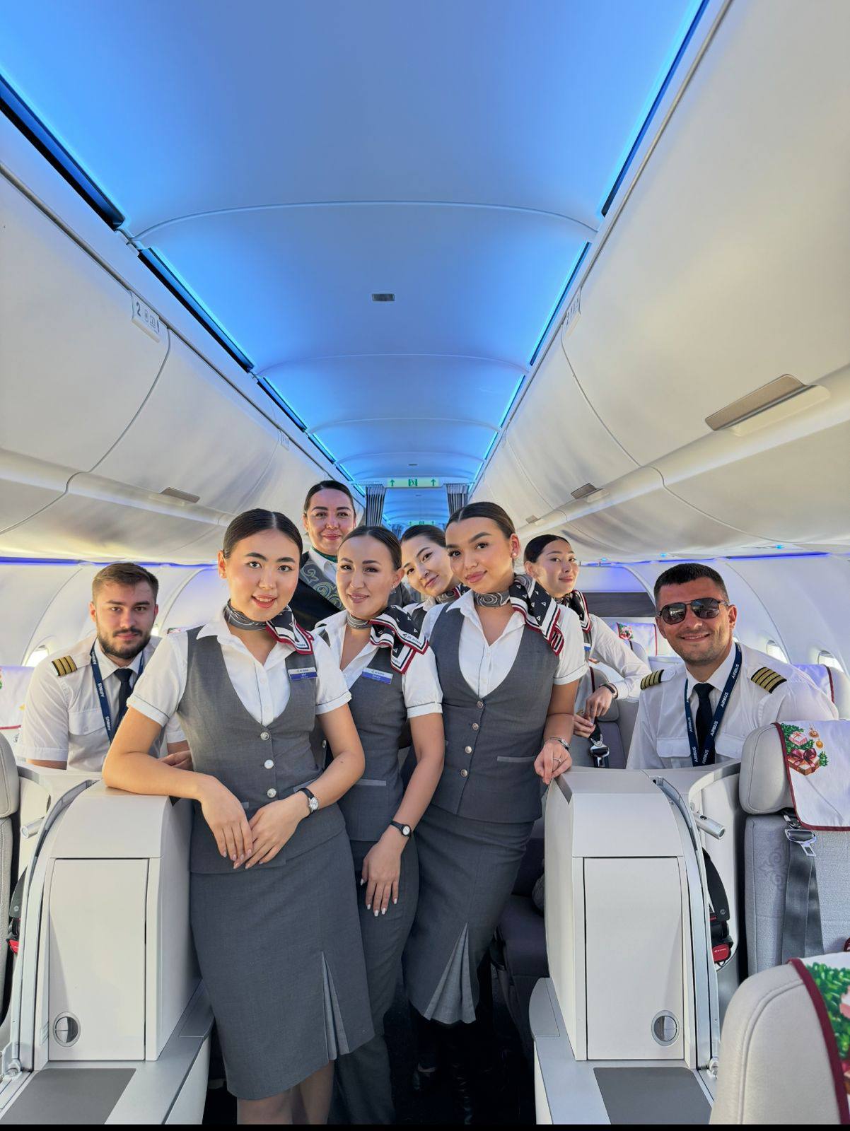 «Это был ночной рейс. Командир объявил, что наступил Новый год, поздравил пассажиров. Я впервые встречала праздник в небе — ощущения были странные, но интересные. С нами ехала большая компания: они открывали шампанское и явно отлично проводили время.», — рассказывает Меруерт.