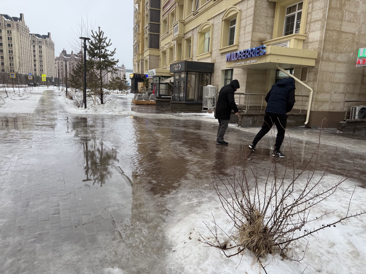 «Астана, будьте осторожны. Сейчас 4 утра, едем в цех выполнять заказы. Везде страшный гололёд, идёт дождь, очень скользко… Я буквально ползла на четвереньках».