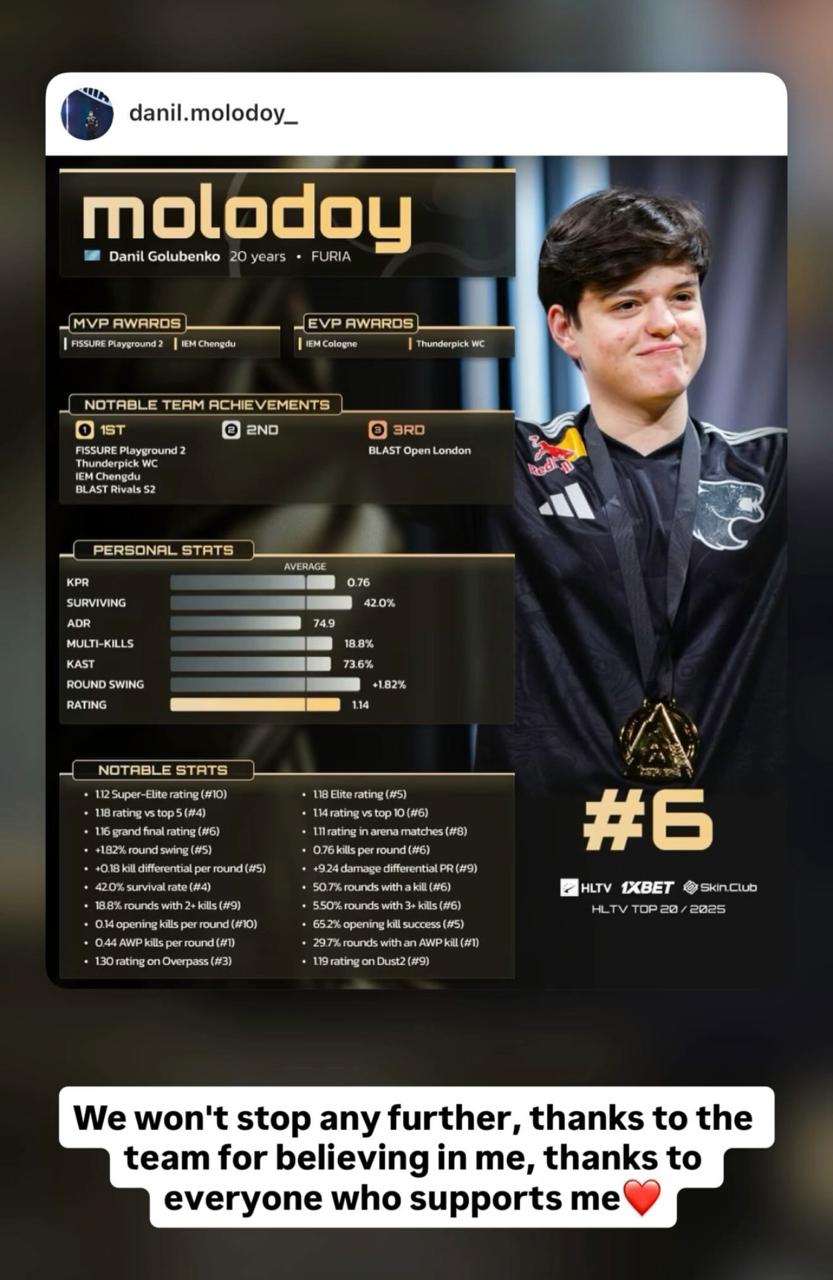 Об этом сообщили на официальном сайте HLTV (от Headline Live TV) в Инстаграм – ведущего международного портала, посвященного киберспорту, в основном игре Counter-Strike: Global Offensive (CS:GO). На сайте опубликовали видео с Даниилом и поздравили его с достижением.