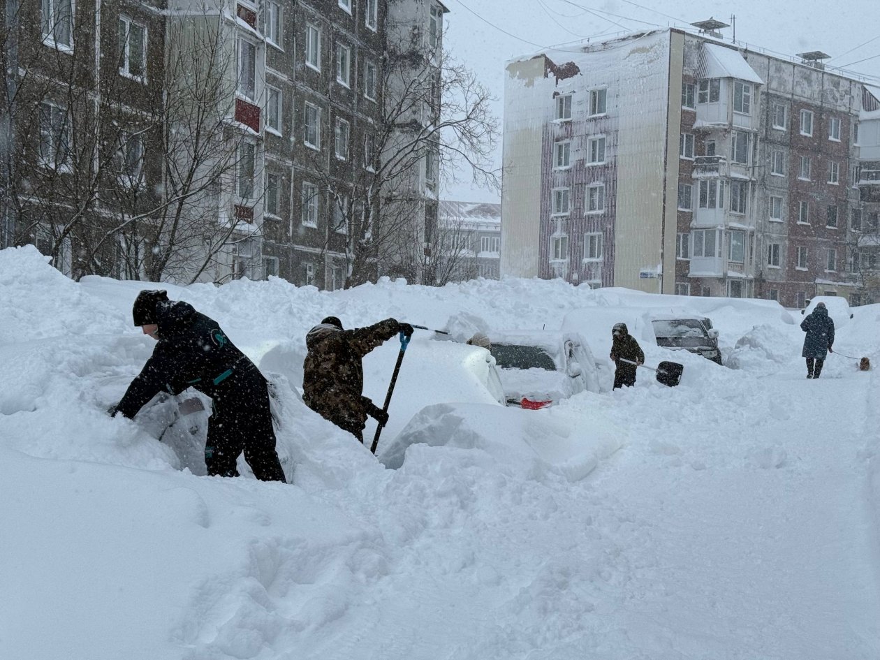 К ликвидации последствий снегопадов подключились спасатели, студенческие отряды и волонтёры. Они помогают жителям домов, оказавшимся в снежной блокаде.