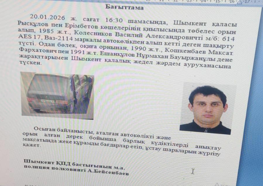 Анализ записей с камер уличного видеонаблюдения показал, что злоумышленники пересадили Василия Колесникова в автомобиль ВАЗ-2114 с номером 614 AES 17, после чего направились в сторону Ордабасинского района Туркестанской области. По всем подразделениям полиции была разослана ориентировка, был введен план «Перехват», однако задержать автомобиль не удалось.
