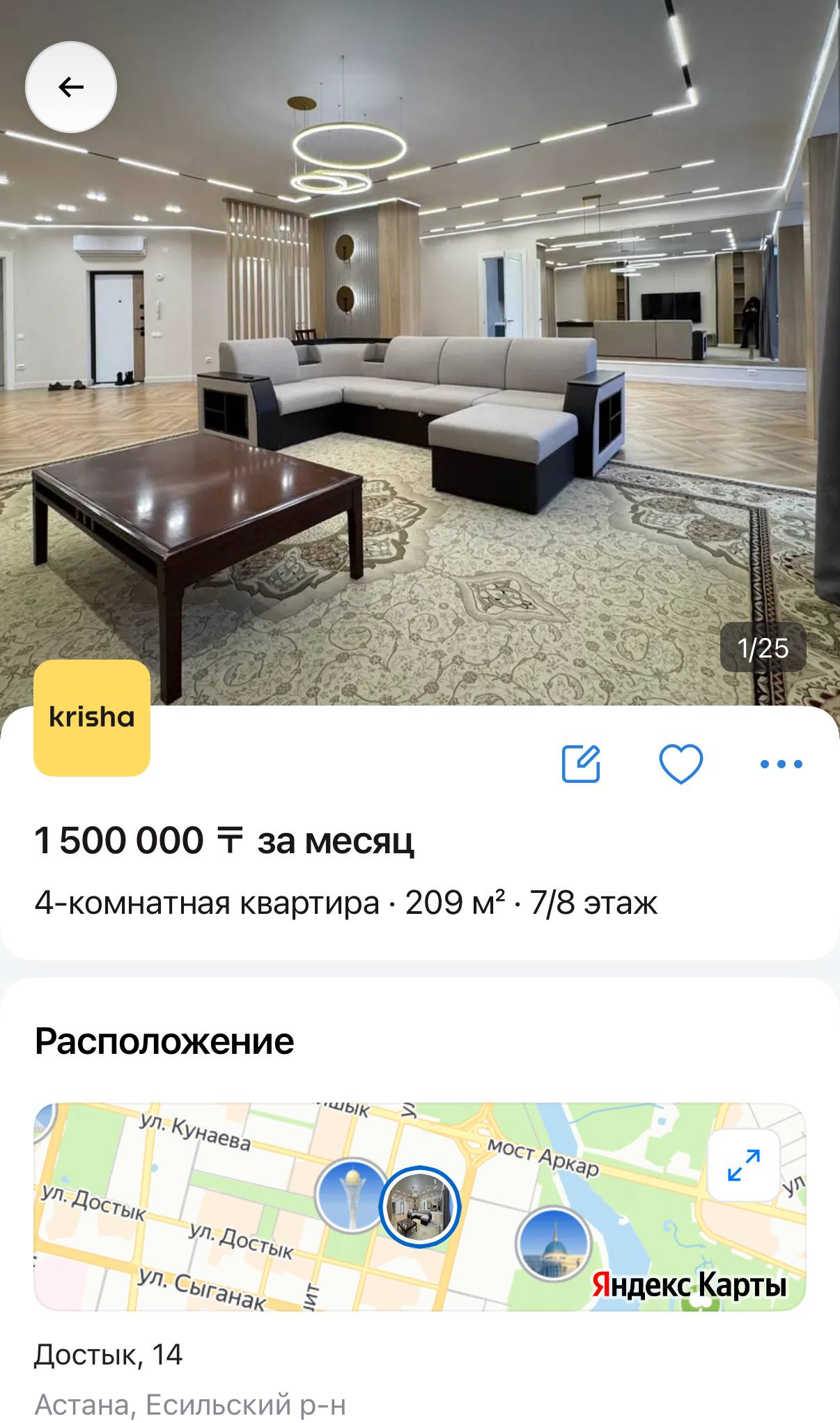 На сайте Krisha.kz однокомнатные квартиры в ЖК «Нурсая» за «Байтереком» начинаются от 250 тысяч тенге, двухкомнатные — от 350 тысяч, трёхкомнатные — 500–700 тысяч, четырехкомнатные – 850 тысяч -1,5 миллинов тенге. В ЖК «Panorama Park», рядом с ЭКСПО, однушки стартуют от 250 тысяч, двушки — от 350 тысяч, трёшки — от 450 тысяч в зависимости от площади и ремонта.