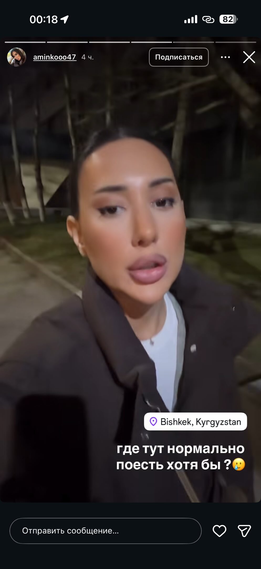 На кадрах видно, как девушка вместе с подругой гуляет по городу и пытается найти место, где можно прогуляться и поесть. Не найдя подходящих локаций, она позволила себе нелестные высказывания в адрес Бишкека, сравнив его с одним из российских городов.