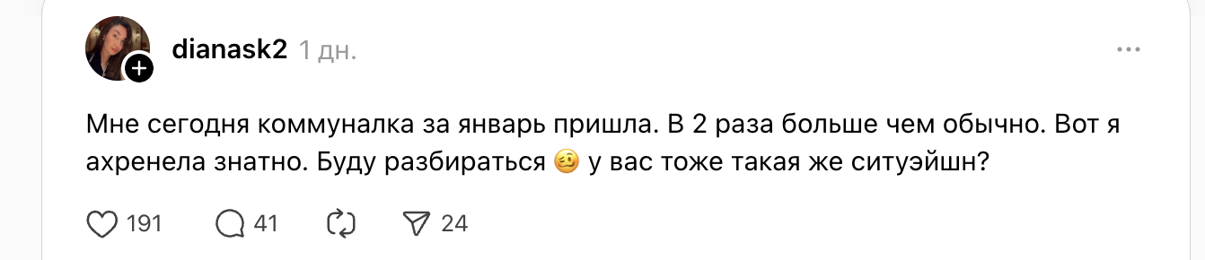 «Мне сегодня коммуналка за январь пришла в два раза больше, чем обычно», – пишет один пользователь.