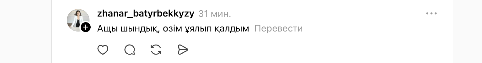 Напомним, ранее в сети разгорелся скандал вокруг ресторана на горнолыжном курорте Шымбулак. Сотрудница заведения Елена отказалась обслуживать клиента на казахском языке, заявив: «Я родилась в СССР и не обязана говорить на вашем языке». Позже женщина прокомментировала ситуацию в Threads, утверждая, что мужчина применял к ней физическую силу. Ресторан публично принёс извинения и уволил сотрудницу. Сама Елена вскоре извинилась перед общественностью.