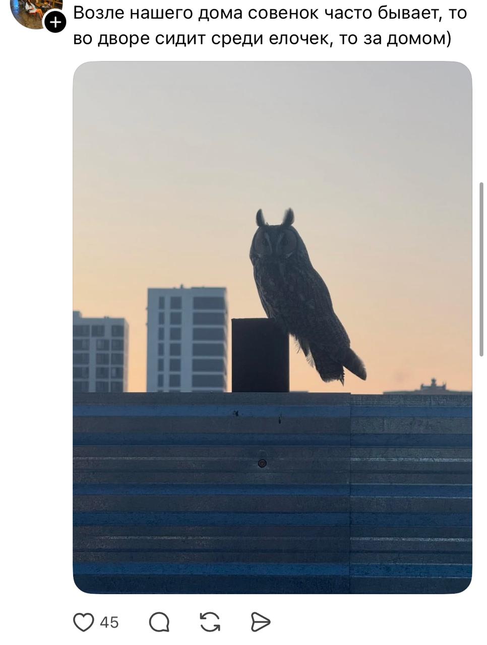 В комментариях под постом астанчане восхитились этим природным явлением: одни шутили, другие делились похожими снимками сов и других птиц. Многие также отмечали, что тоже видели сов в городе, однако чаще всего они появляются ночью.