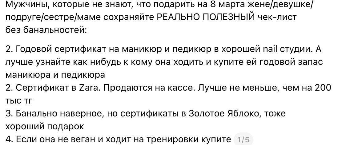 Мы опросили казахстанок, что бы они действительно хотели получить в Международный женский день, передает ИА «NewTimes.kz».