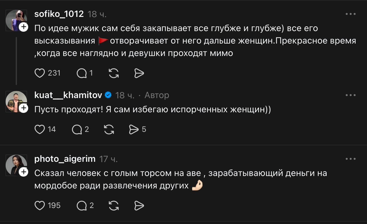 Хамитов в комментариях также заявил, что испорченные женщины его не интересуют.