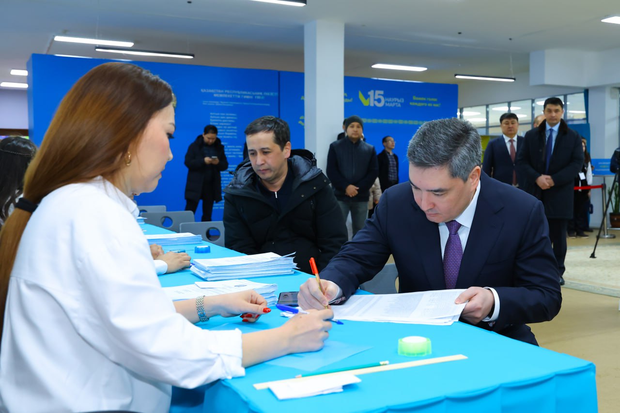 Премьер-министр Олжас Бектенов проголосовал на референдуме по проекту новой Конституции. Свой голос он отдал на участке №130 в школе-лицее №66 имени Динмухамеда Кунаева.