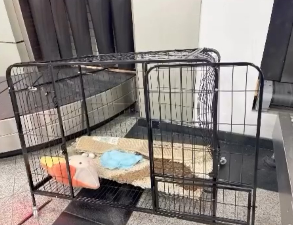 На опубликованных кадрах видно, что клетка для перевозки оказалась повреждена.