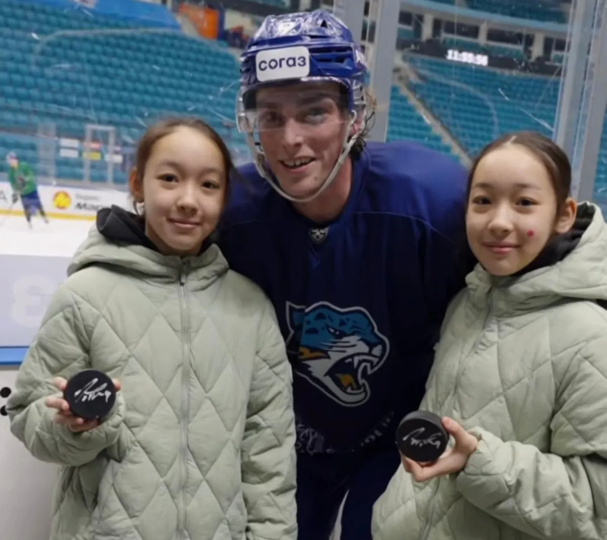 Юная болельщица хоккейного клуба «Барыс» Анель вместе со своей сестрой-близнецом получила шайбу с автографом игрока Тайса Томпсона после недавнего скандала на матче в Астане, передает  ИА «NewTimes.kz»