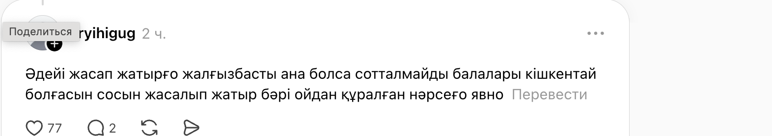 «Как говорится, после развода дети нужны только матери. Сегодня он отказался от своих детей, сказав, что они все равно будут как их мать. Никогда не думала, что такой заботливый отец в один день скажет: “Детей больше не приводить”», — написала она.