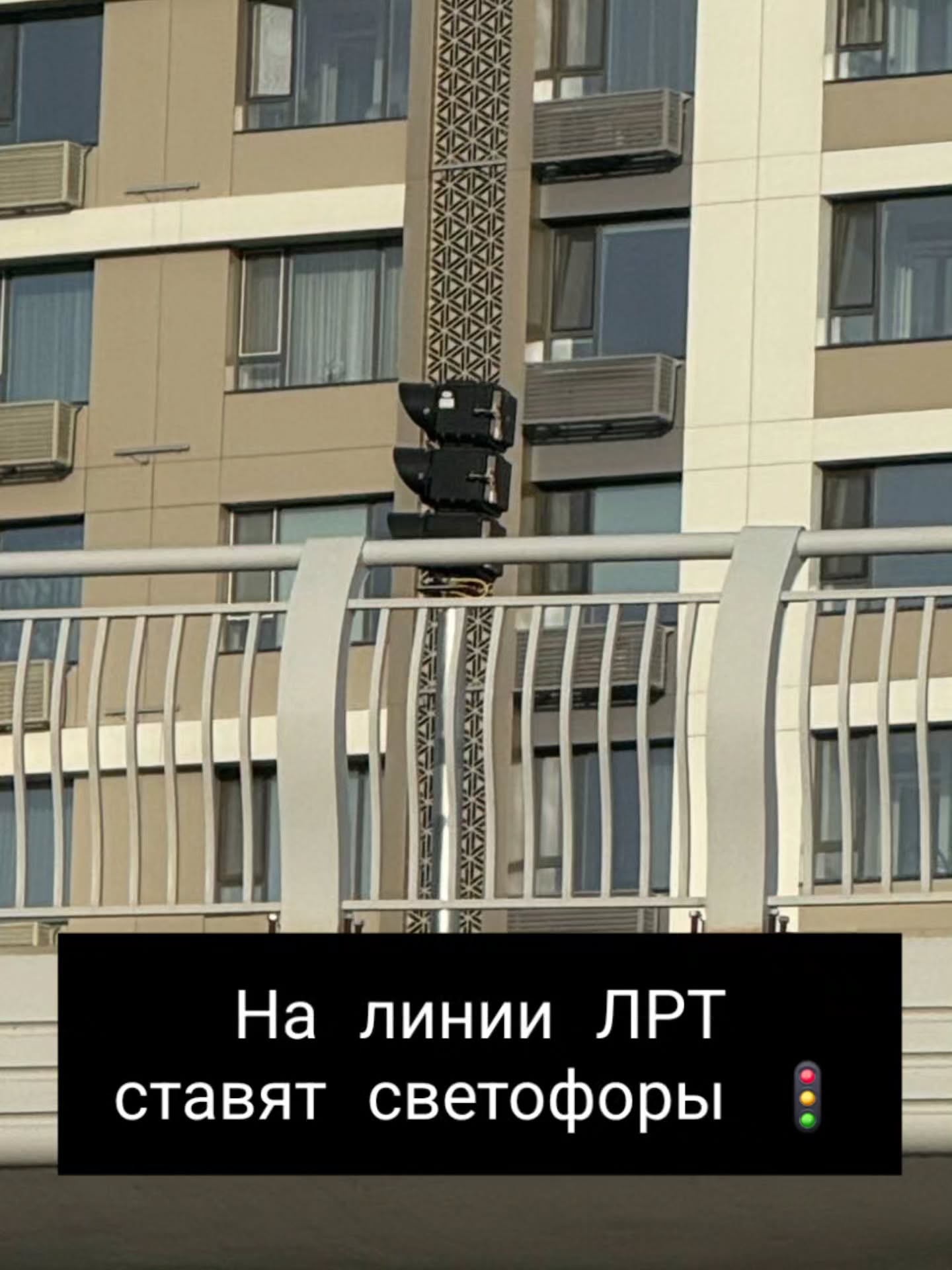 На линии ЛРТ в Астане ставят светофоры, фотография появилась в Threads, передает ИА «NewTimes.kz».
