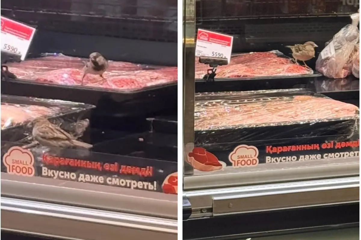 Птицы клюют мясо в витрине: инцидент в супермаркете встревожил астанчан