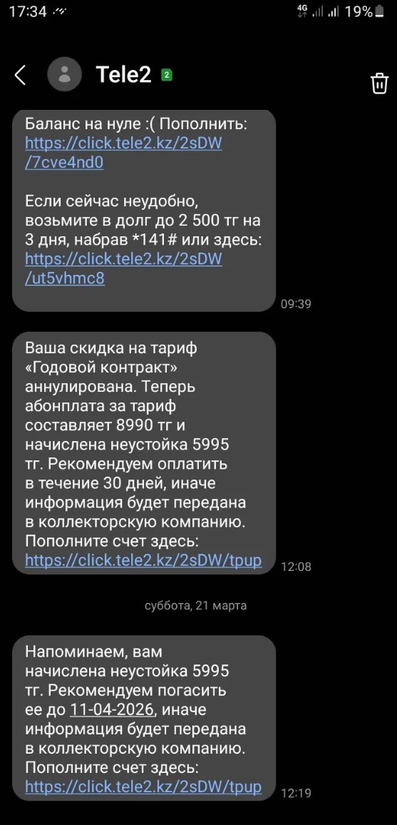 Житель Казахстана написал в Threads, что столкнулся с неожиданным долгом после использования тарифа от Tele2. По его словам, он подключил тариф стоимостью около 8990 тенге (по акции — примерно 5 тысяч), однако некоторое время не пользовался SIM-картой, передает ИА «NewTimes.kz».