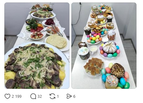 «Мы казахи, мы уже начали их печь и поедать. Пасха кабыл болсын», — гласит подпись к фото.
