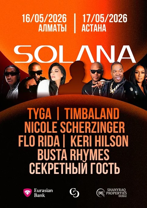 Среди крупных событий — SOLΛNA Festival, который пройдет 16–17 мая в 19:00 в гольф-клубе «Astana». Стоимость билетов — от 62 000 до 120 000 тенге. В лайнапе заявлены мировые артисты: Tyga, Flo Rida, Busta Rhymes, Timbaland, Nicole Scherzinger и Keri Hilson. Организаторы также анонсируют специального гостя, имя которого будет раскрыто только во время фестиваля.