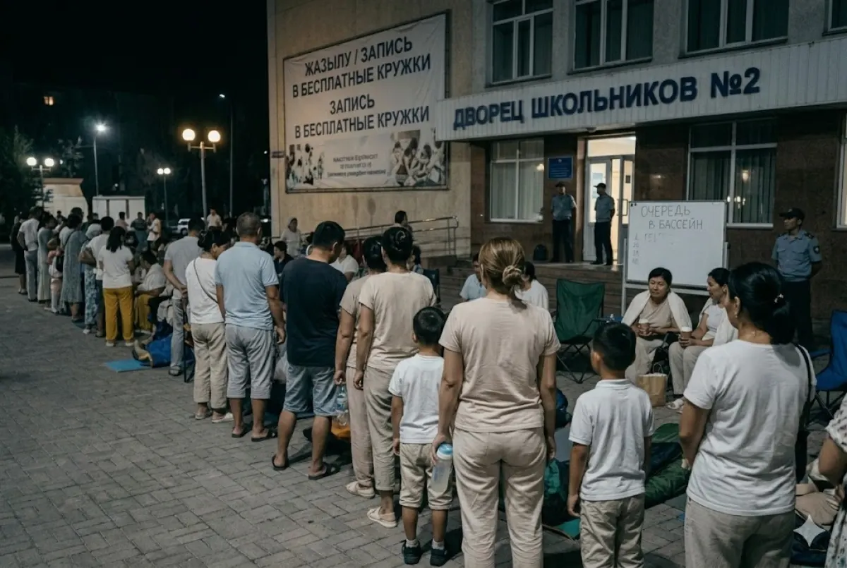 По данным регионального сайта otyrar.kz, главным поводом для недовольства стал набор в плавательный кружок. По словам родителей, попасть на бесплатные занятия не удается уже несколько лет. Жительница города Улмекен Бимусаева рассказала, что пришла к зданию в 08:30 и оказалась 143-й в списке, в то время как некоторые дежурили у входа с глубокой ночи.
