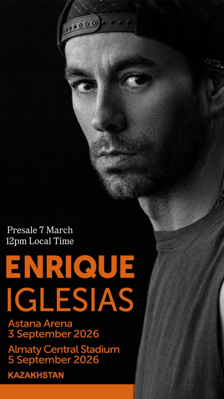 Испанский поп-исполнитель Энрике Иглесиас подтвердил, что в 2026 году выступит в Казахстане. Артист сообщил в Instagram, что даст два концерта – в Астане и Алматы, передает ИА «NewTimes.kz».