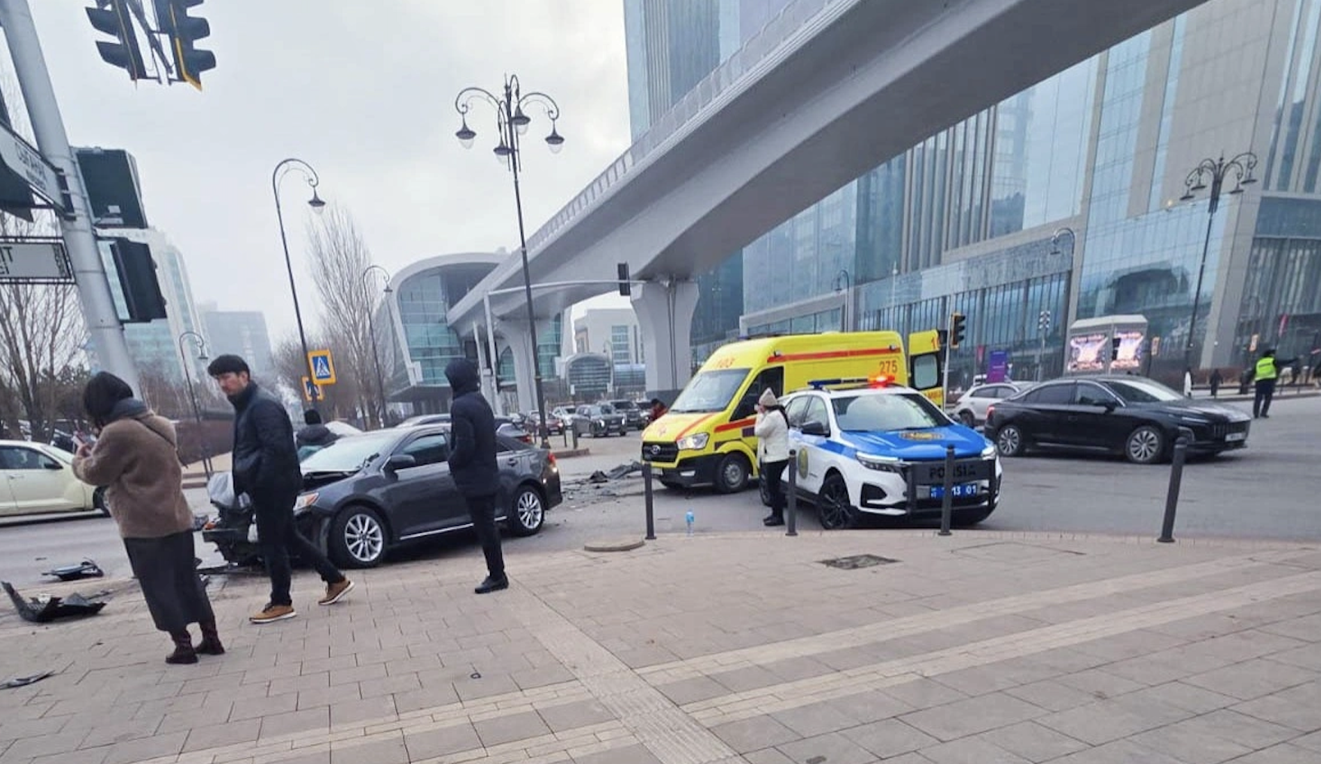 Как сообщили в пресс-службе департамента полиции Астаны, водитель автомашины «Geely», на пересечении улиц Сыганак и Акмешит, выехал на перекресток на разрешающий сигнал светофора, однако не предоставил возможность завершить маневр автомобилю «Toyota», двигавшемуся в поперечном направлении. В результате произошло столкновение, после чего автомашина «Toyota» по инерции совершила наезд на двух пешеходов и светофорный объект.
