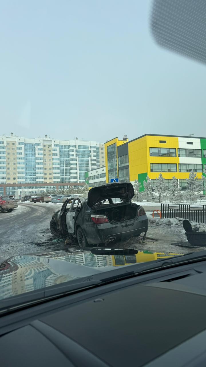 В Астане у школы «Алпамыс» сгорел автомобиль