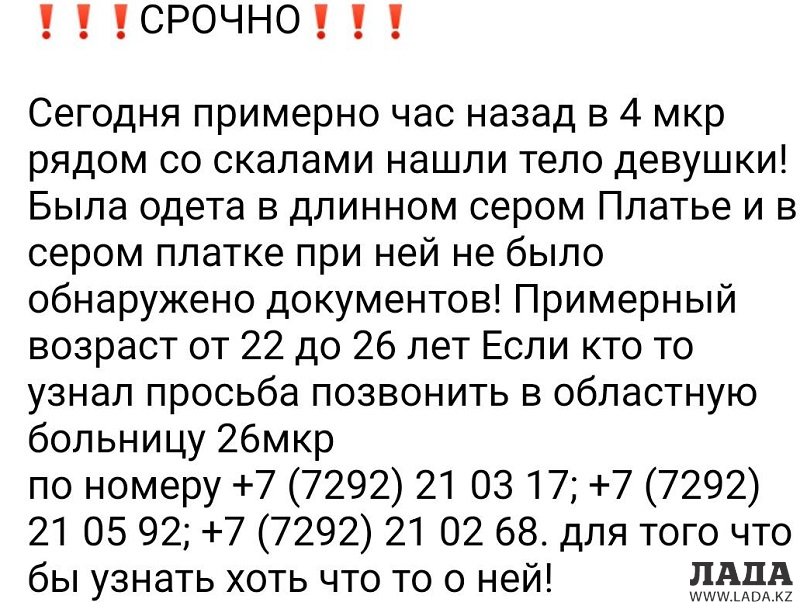 Рассылаемую информацию в социальных сетях о трупе девушки на скалах в Актау опровергли в полиции, передает lada.kz.